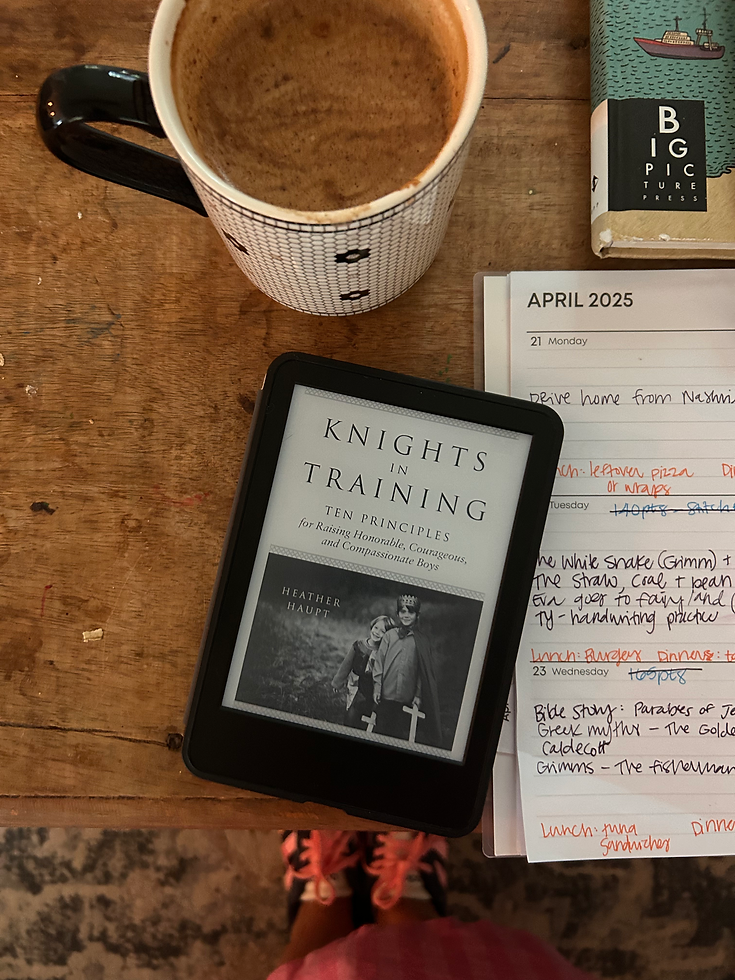 Before we rush to productivity, can we first slow to presence? Can we return not with noise, but with a breath of fresh air? A candle lit. A whispered prayer. A mother’s smile that says: “It’s good to be here together.” And that’s where I hope to start our month of May, wrapping up a few end of year recitals and things, but ideally to work towards a gentle reset in ways to prepare our home over the next few weeks of summer before we ultimately begin again.